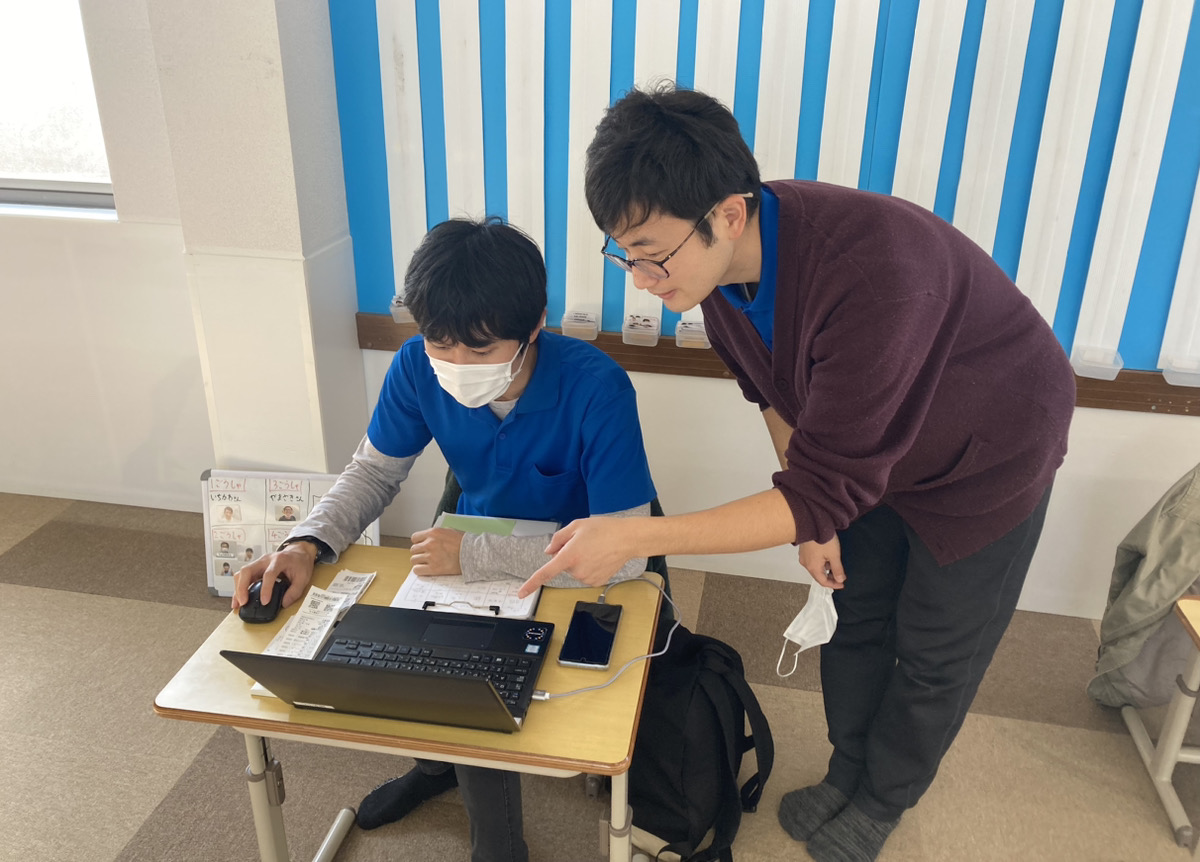 ご利用者様が来所するまでは、主にイベントの準備やパソコン等を使った事務作業を行っています。特に工作やクッキングなどを自分が担当する時は、失敗しないようにご利用者様の特性を考えながら作る物・行程・ご利用者様に行って頂く作業内容を考えて準備を行っています。ご利用者様が来所してからは、宿題・個別課題の見守りを行ったり、余暇時間ではご利用者様の遊びに付き合ったりしています。